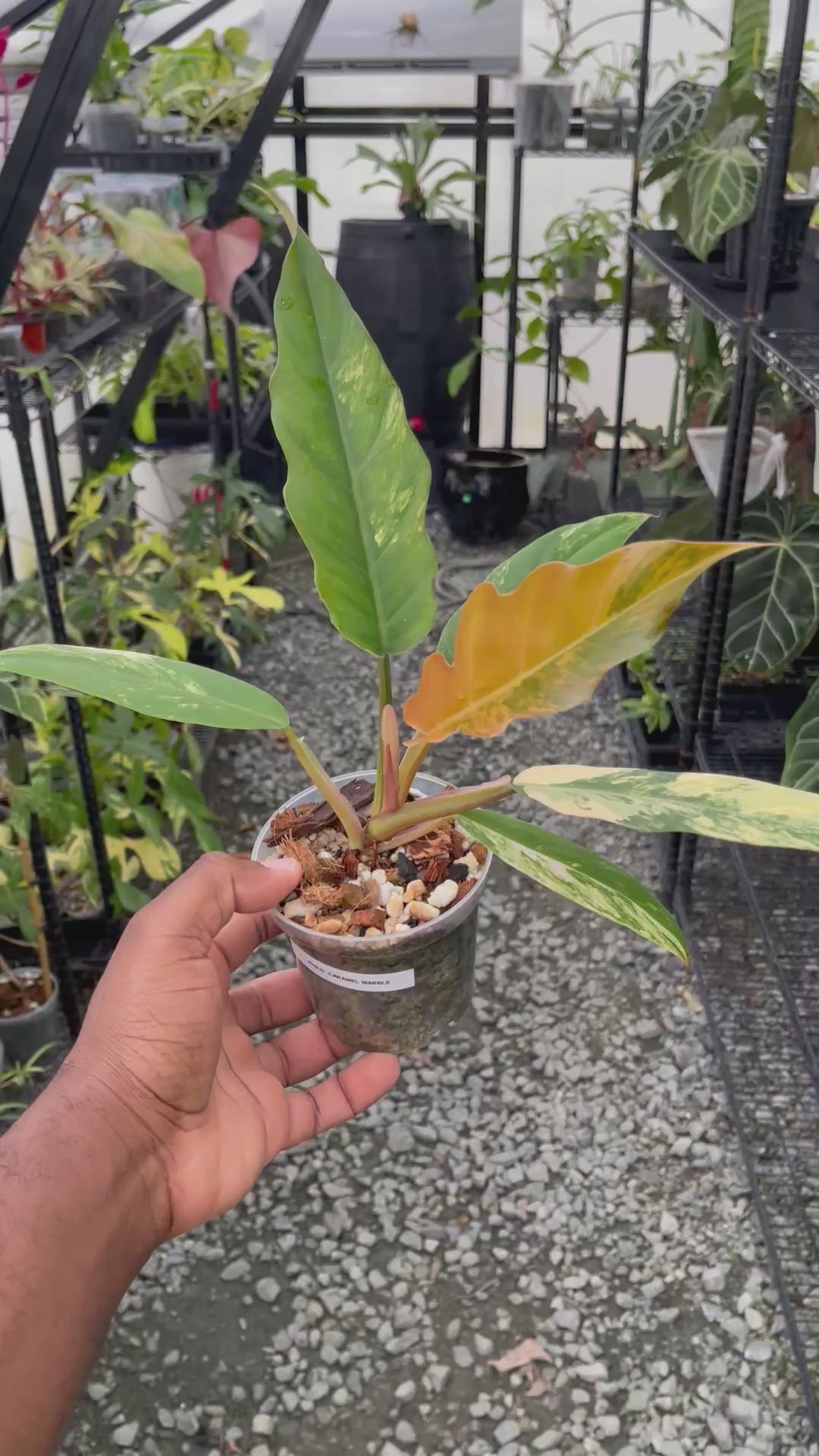 Beautiful Philodendron Caramel marble in a 3" pot. Stunning variegation! A true unicorn plant indeed.