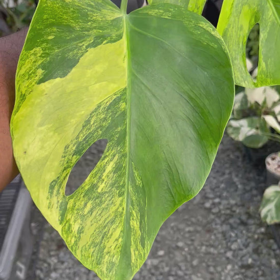 Beautiful Monstera Aurea in 5" pot. This monstera Aurea has wonderfully variegated leaves. This Monstera is small form. High color! (Pictures of Actual Plant)
