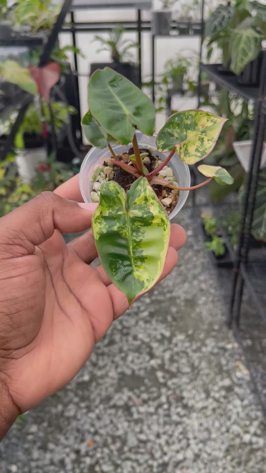 Beautiful, variegated Philodendron Billietae in a 3" pot. this amazing specimen has great color and Stunning variegation! A true unicorn plant indeed.