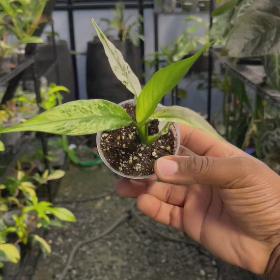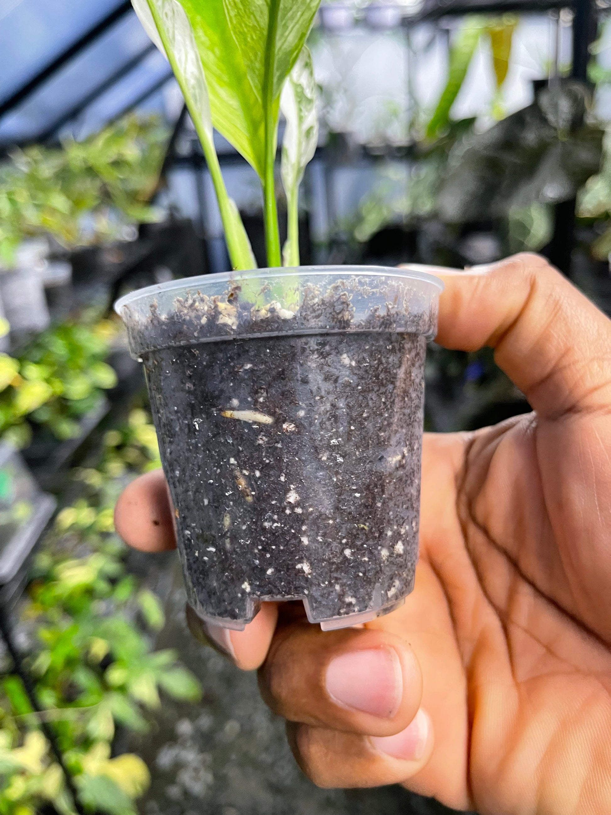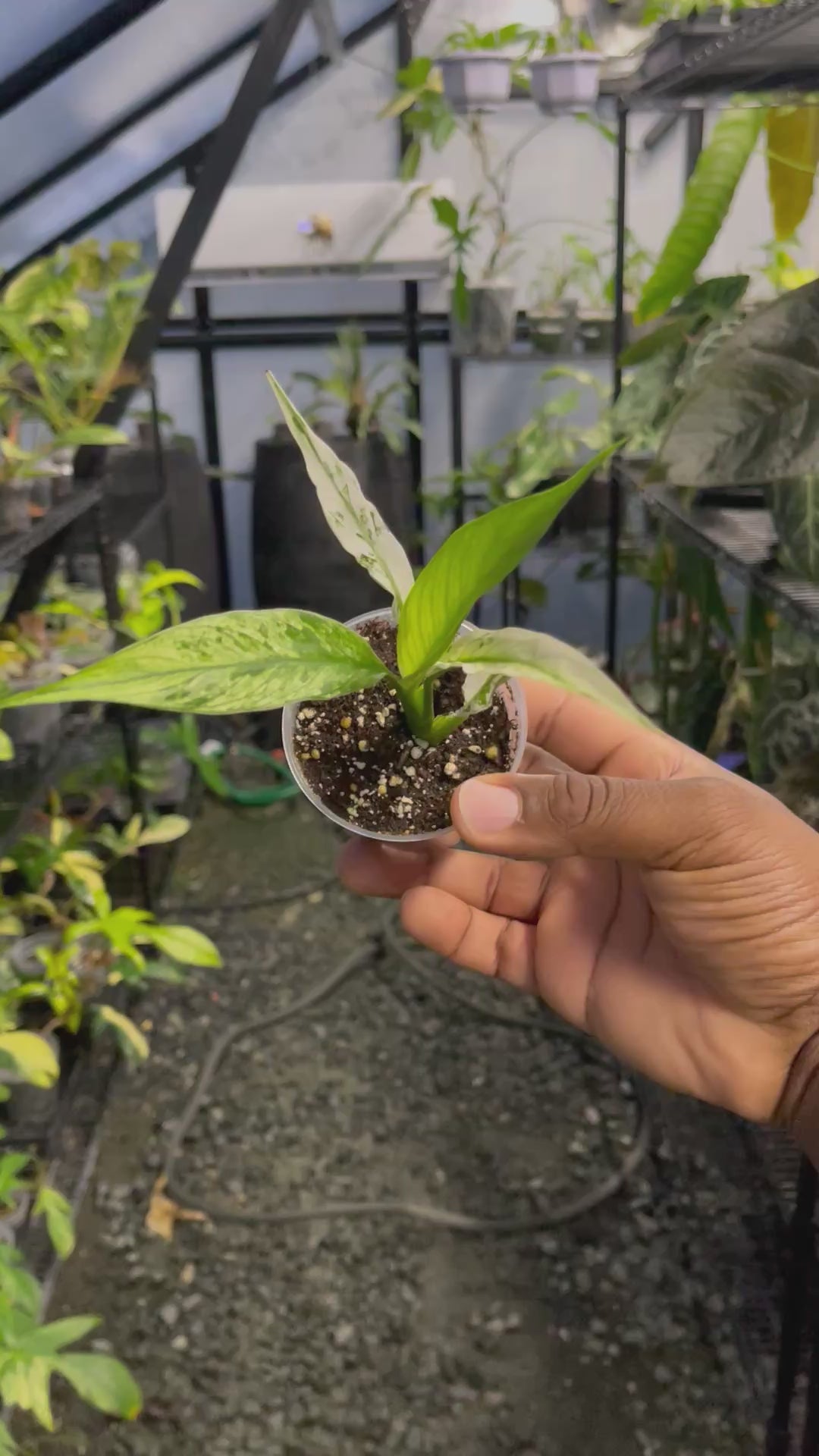 Beautiful Variegated Spathiphyllum potted in a 2” pot. Gorgeous color and variegation!
